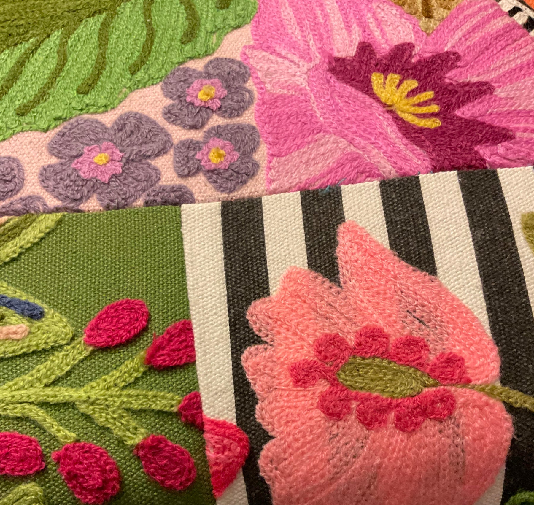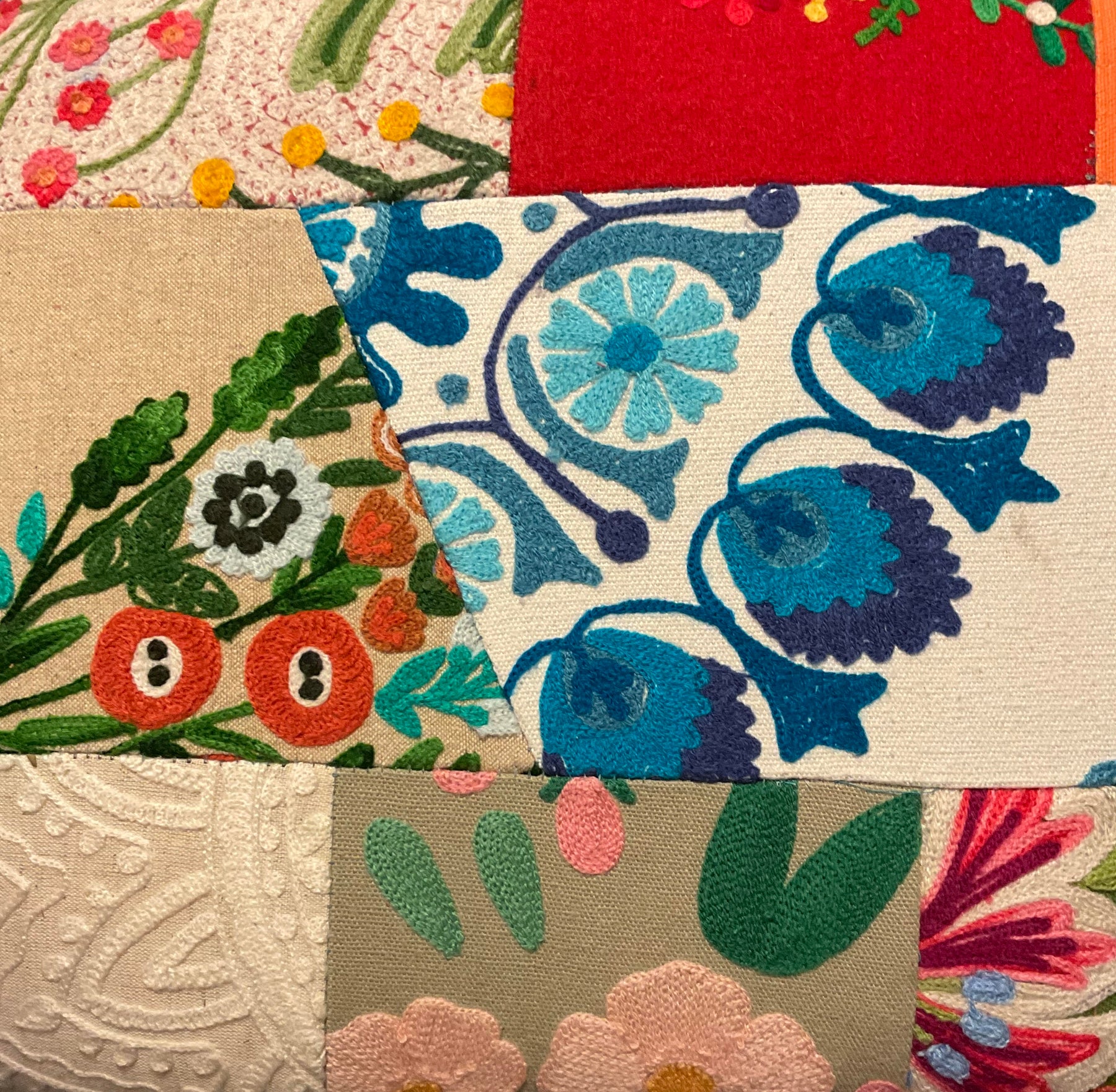 Dimensions of the bench - 120 cm length, 30 cm width and 46 cm height. Please note the benches are made from recycled patchwork cotton that generally has some embroidery, it may have designs of people, animals, flowers, lettering and geometric designs and even some imperfections thats the beauty of these amazing benches you will not get the bench in the photograph this shows you the style of the benches available.